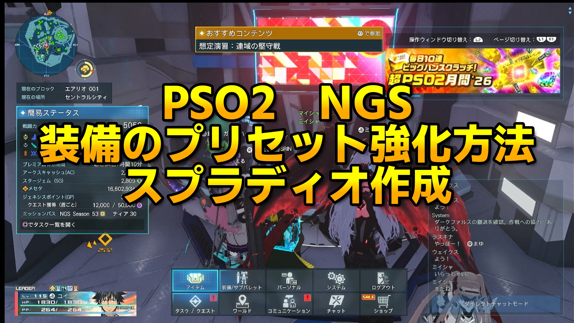 まずプリセットを最大値のLV5にするには同じ名前の装備を16個必要です(LV1から全部上げていく場合)