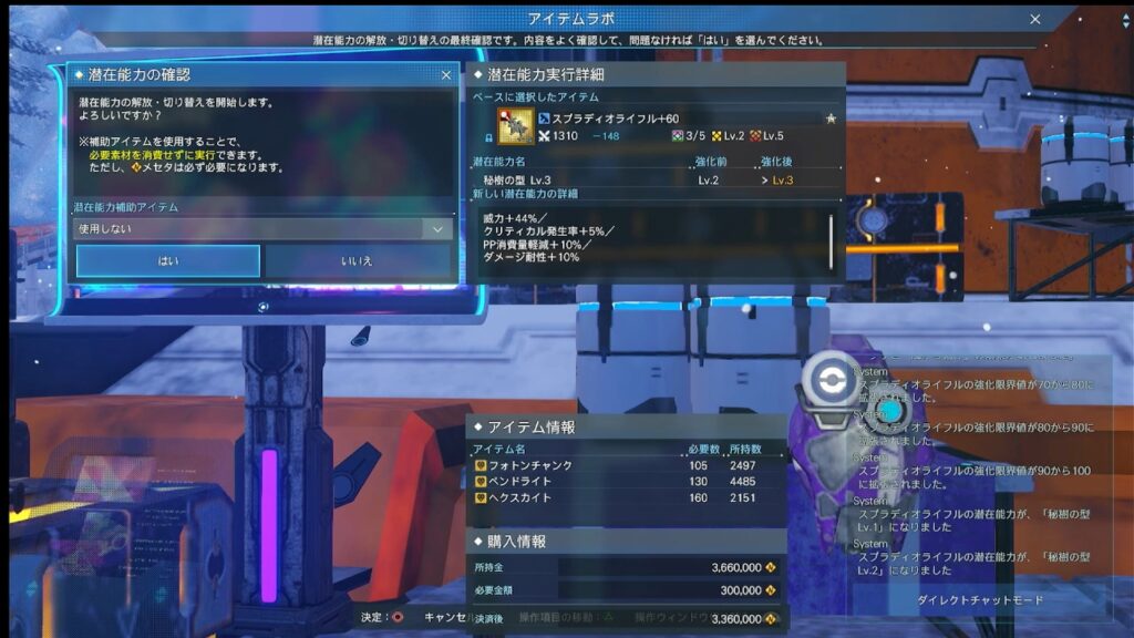 武器には潜在能力があるので解放していきます、これを忘れていると火力が全くでないのでやっておきましょう。