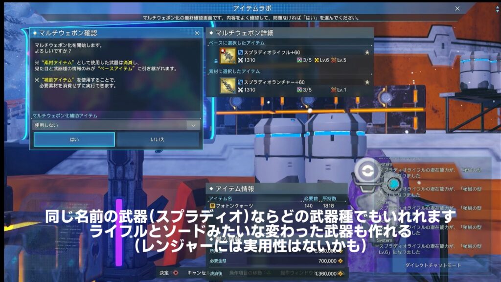 マルチウェポンは解除できないのでよく考えて実行しましょう。(絶対やらないといけないという事はない)
